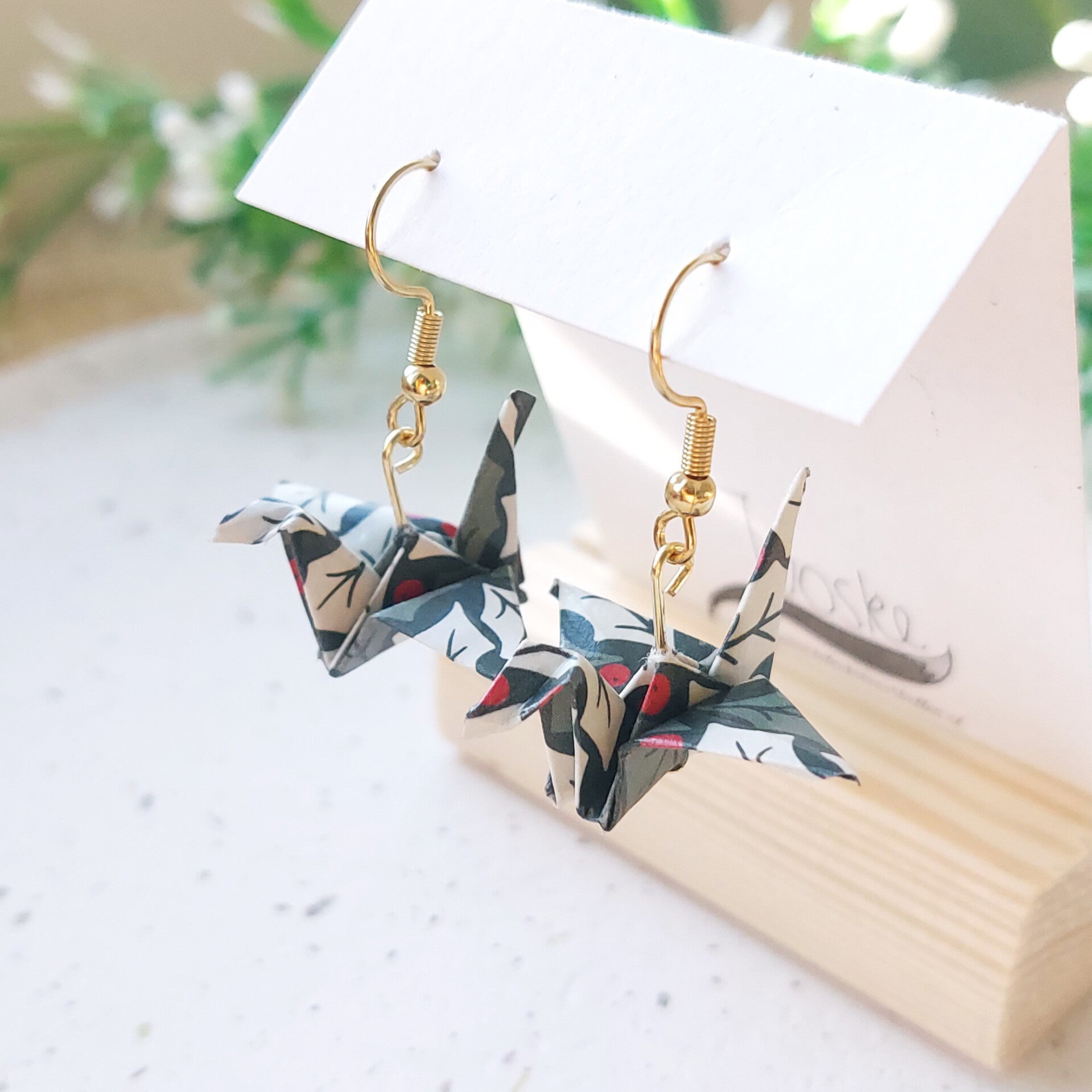 Echte origami kraanvogeltjes voor in je oren! Gevouwen met origami papier.