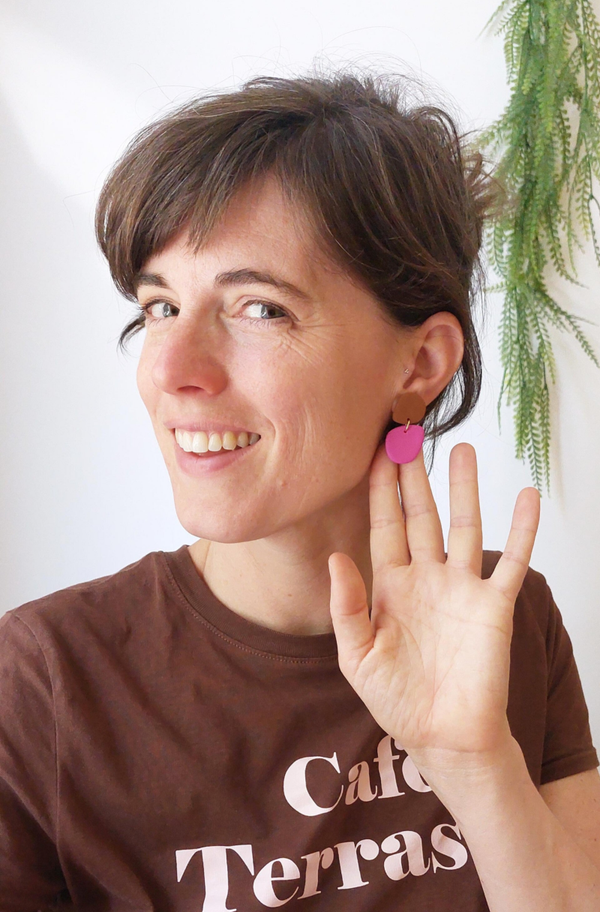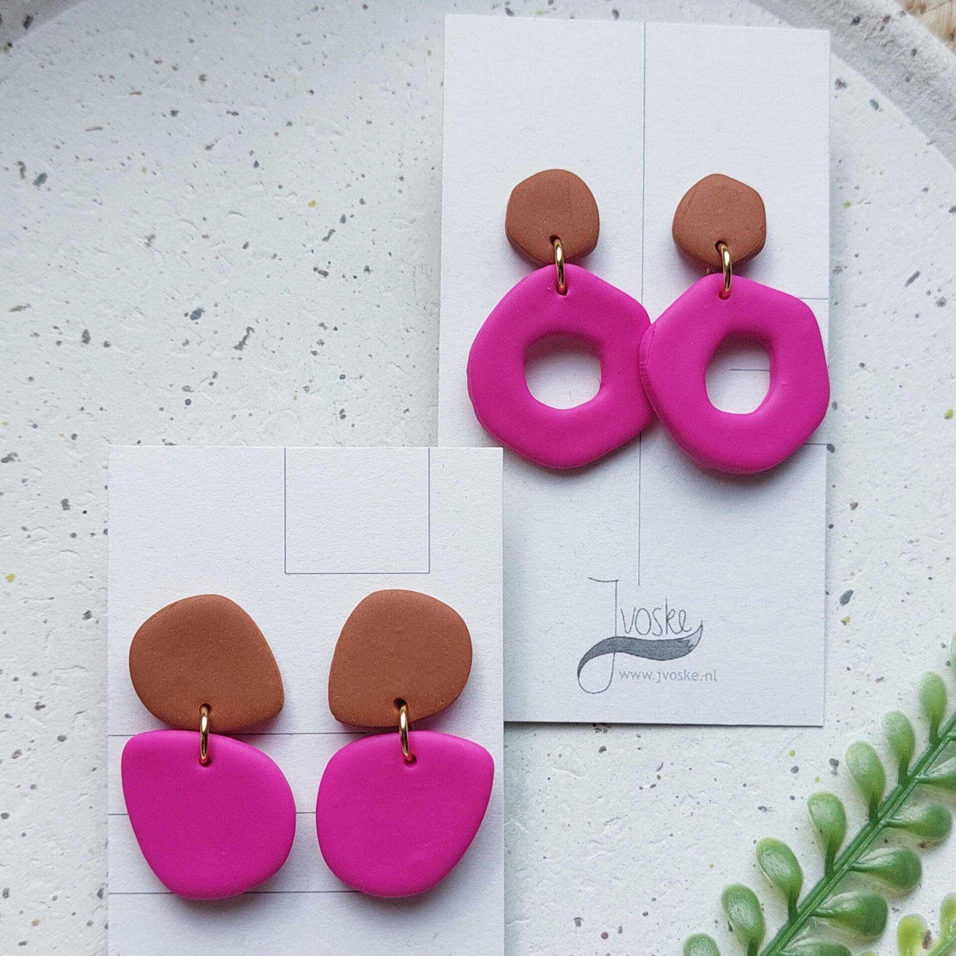 Stijlvolle matte oorbellen in fuchsia/bruin.