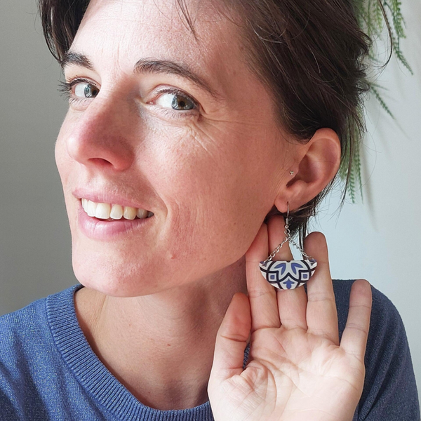 Het koekblik waar deze oorbellen van zijn gemaakt, hebben een prachtige azulejo (Portugese siertegels) print 🥰