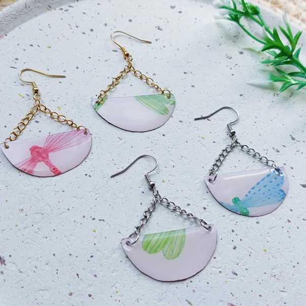 Een originele set oorbellen van blik en stainless steel.