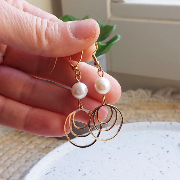 Goudkleurige oestervorm (gold plated) met zoetwaterparels.