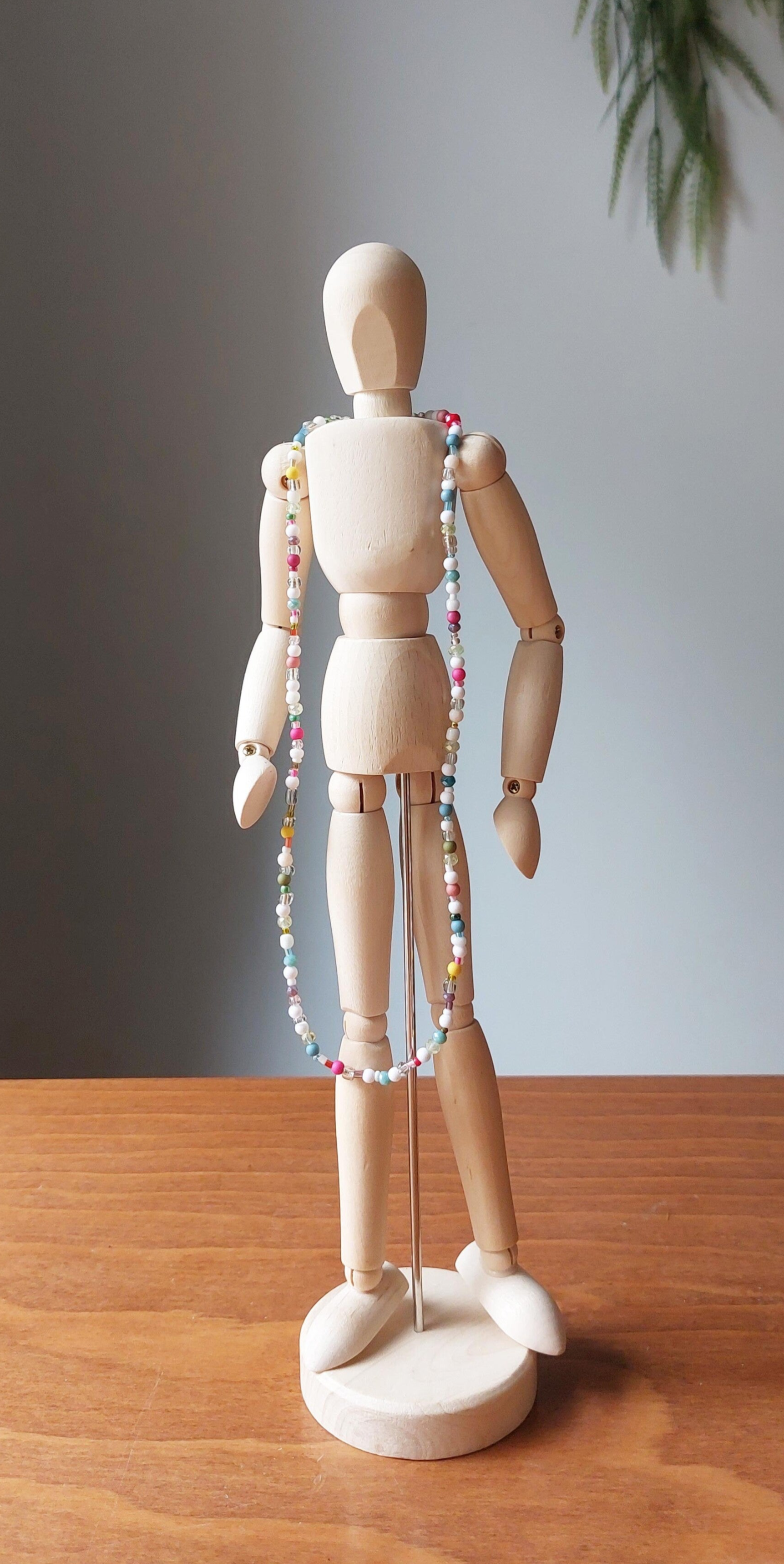 Ketting met fijne kleine kraaltjes in een mooie kleurenmix. Elastisch, dus zonder slotje.