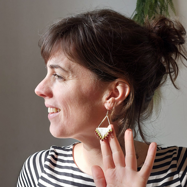 Een mooie grote goudkleurige driehoek, met een weefwerk van (Miyuki) kralen.