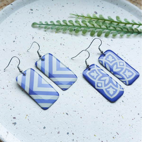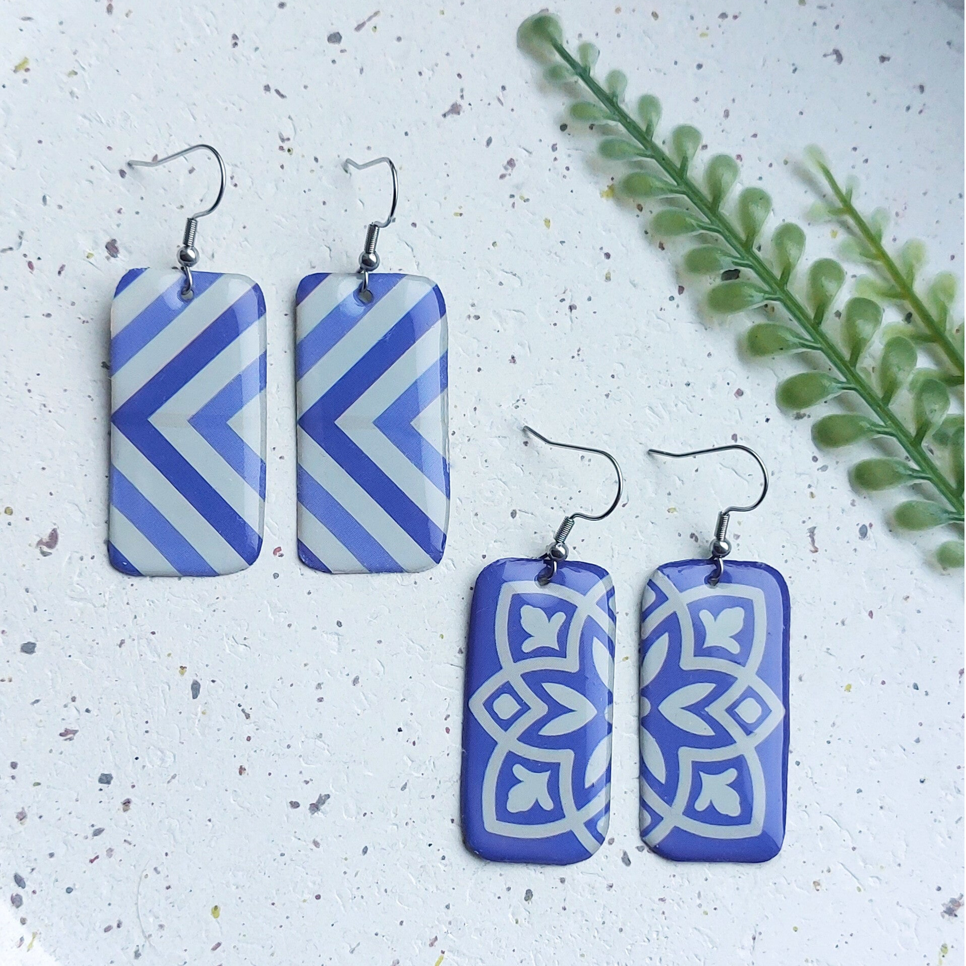 Het koekblik waar deze oorbellen van zijn gemaakt, hebben een prachtige azulejo (Portugese siertegels) print 🥰